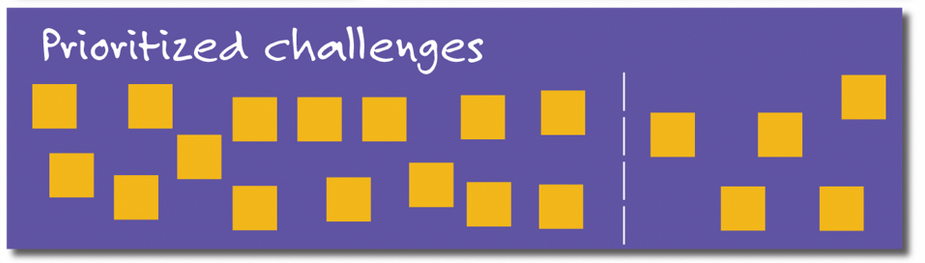 על גבי התרחישים, מסמנים בהצבעה דמוקרטית בלבד, את האזורים שהם פוטנציאל והזדמנות לארגון שלנו וכדאי להתמקד בהם. העדיפות – לבחור את הנקודות שהלקוחות היו רוצים שתשנו ותשפרו – אלו ההזדמנויות