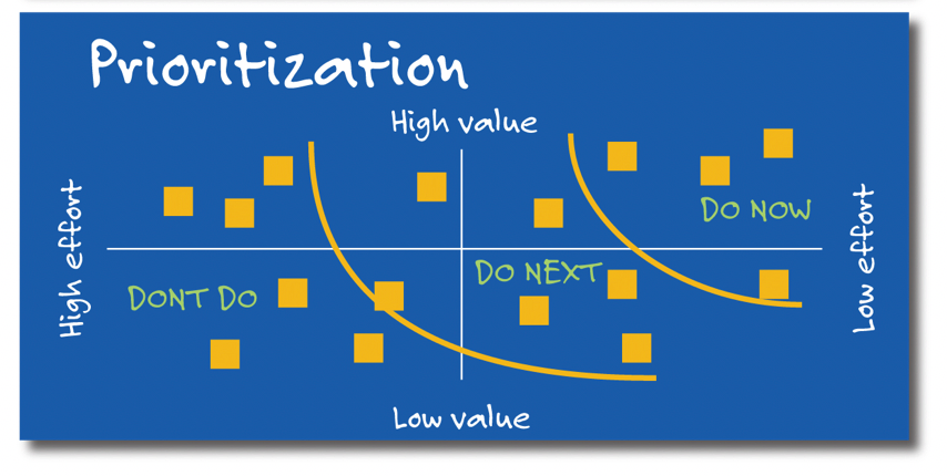 הבחירה תעשה לפי תיעדוף של ערך גבוה והשקעה נמוכה אל מול החזון של הארגון.