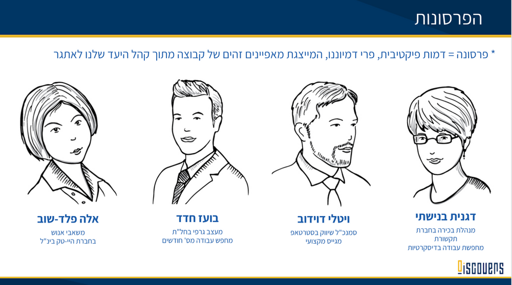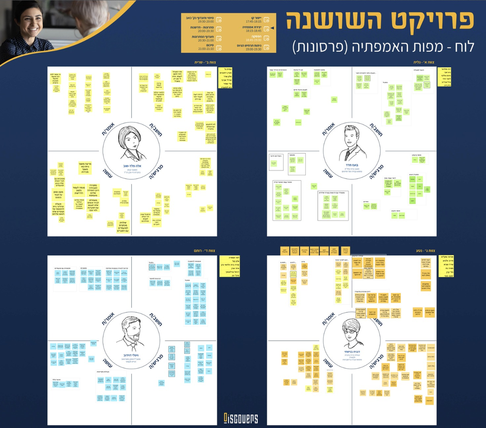 בפעילות זו יצרנו אמפתיה לארבע פרסונות שמעורבות באתגר בצורה המשמעותית ביותר: