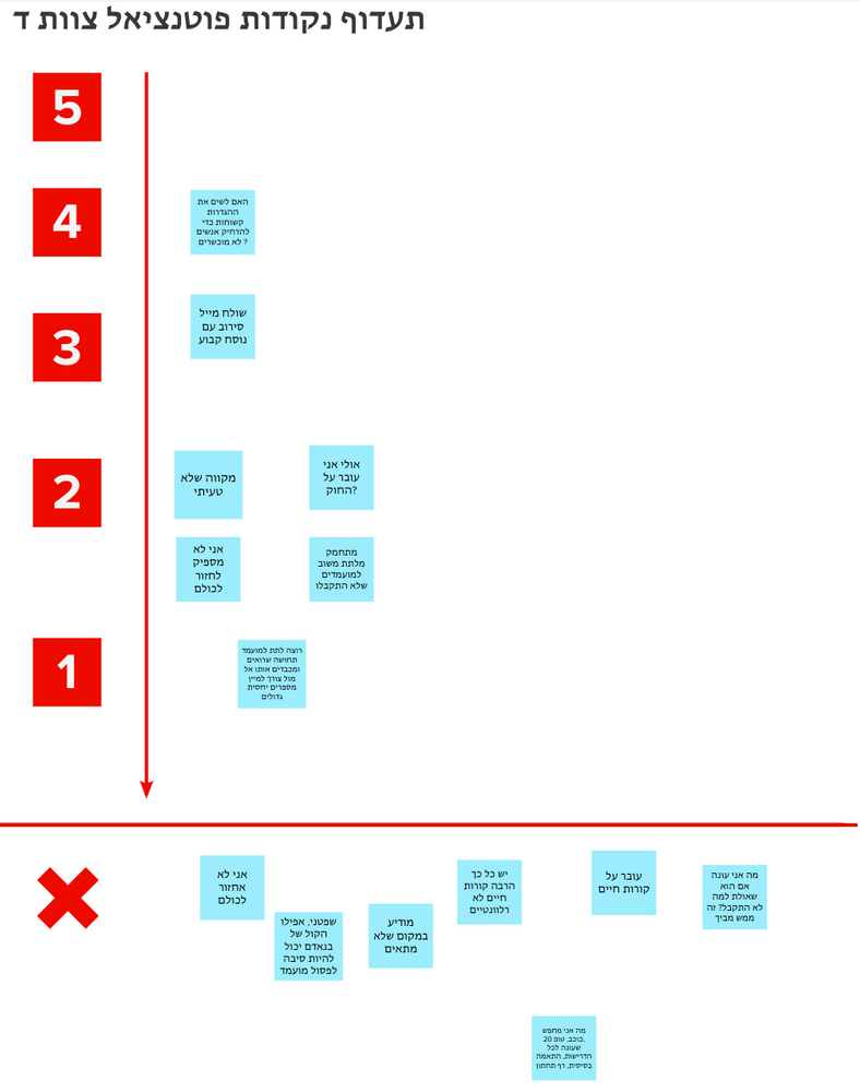 לאחר מכן יצאנו להצבעה על נקודות הכאב המשמעותיות ביותר. בחרנו ותעדפנו 6 נקודות כאב לכל פרסונה.
