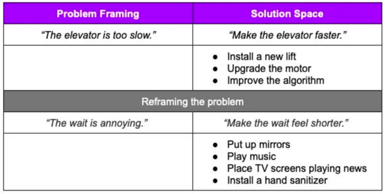 טבלה 2: בעיית המעלית האיטית ממוסגרת מחדש (מקור: האם אתה פותר את הבעיה הנכונה?)